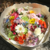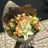• Thiết kế: Bó tròn xoe với sự kết hợp độc đáo giữa giấy kraft nhăn, giấy nhăn và lớp bóng kính. Phong cách gói này tạo nên vẻ đẹp tự nhiên, gần gũi nhưng vẫn giữ được nét tinh tế, hiện đại.