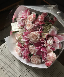 Một thiết kế sang trọng mang tông hồng chủ đạo, kết hợp hài hòa giữa sự nồng nàn của Ly kép Samantha và nét dịu dàng của hoa hồng pastel. Bó hoa không chỉ thu hút bởi vẻ ngoài rạng rỡ, tròn đầy mà còn bởi hương thơm quyến rũ đặc trưng.